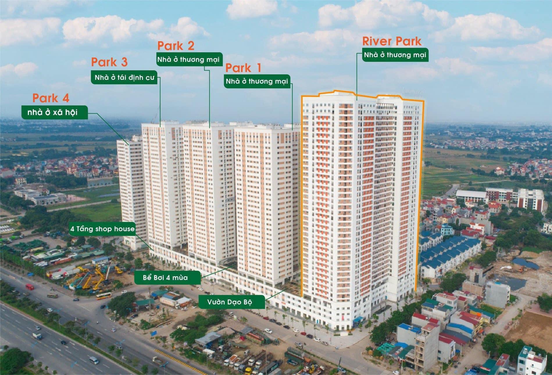 Tổ hợp căn hộ cao cấp Eurowindow River Park bao gồm  5 Tòa River – Park 1 – Park 2 – Park 3 – Park 4 30-39 tầng với 2000 sản phẩm. Mỗi tòa có 3 tầng hầm gửi xe, đảm bảo cung cấp đủ chỗ đỗ xe cho toàn bộ cư dân. Các sản phẩm tại đây được thiết kế hợp lý và tối ưu diện tích sử dụng với các loại căn 2PN, 3PN.