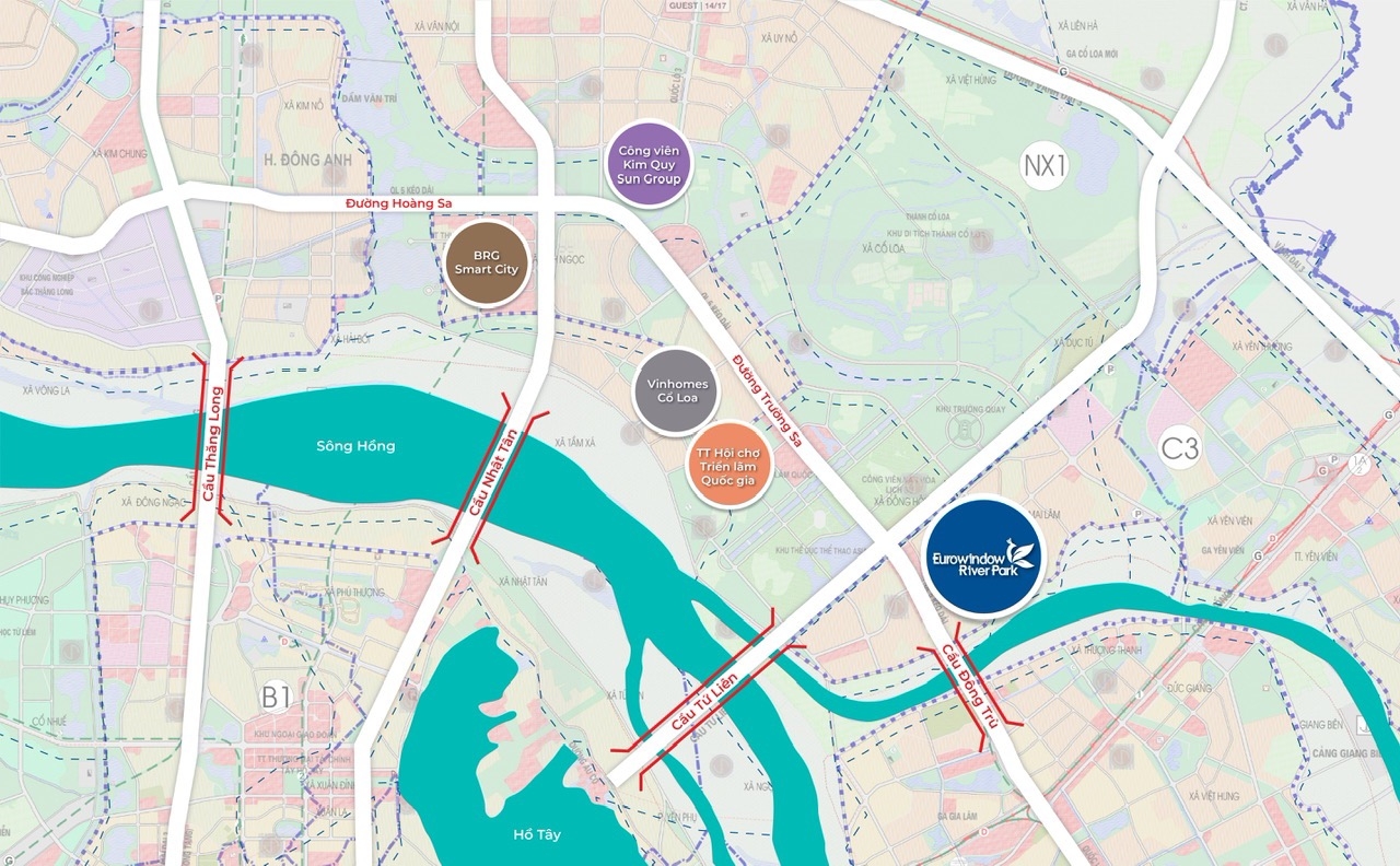 Tọa lạc trên đại lộ Trường Sa ngay bên cầu Đông Trù, EUROWINDOW RIVER PARK sở hữu ưu thế “kép” về vị trí – vừa gần trung tâm hiện đại với chỉ 15 phút di chuyển vào phố cổ, 20 phút tới sân bay Nội Bài…; vừa kế cận điểm giao giữa sông Hồng, sông Đuống để tận hưởng cuộc sống bốn mùa an yên.Dự án đặc biệt hưởng lợi khi nhiệm vụ đưa Đông Anh lên quận năm 2024 là ưu tiên hàng đầu của thành phố Hà Nội, công trình cầu Tứ Liên sắp được triển khai xây dựng, các dự án BĐS cao cấp hình thành góp phần nâng cao nền giá BĐS khu vực…Tất cả hứa hẹn sẽ mang tới cho các chủ nhân cơ hội đón đầu tiềm năng gia tăng giá trị bất động sản trong tương lai.