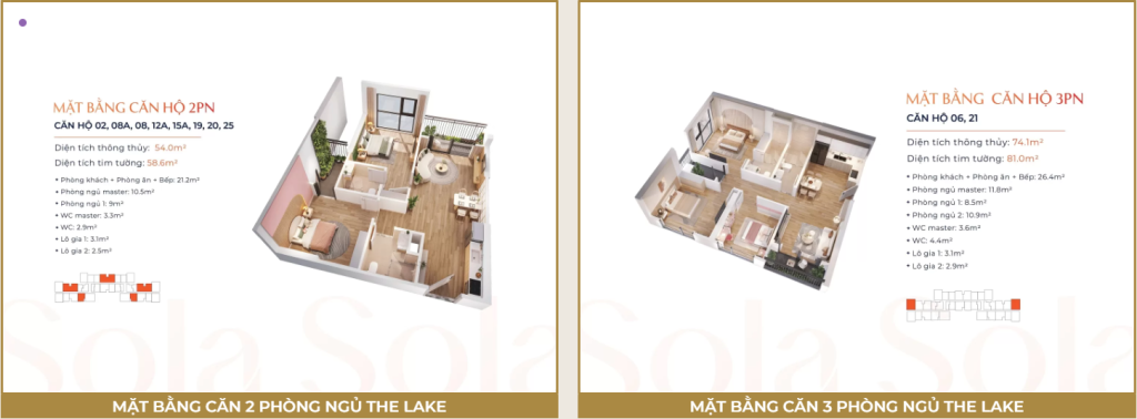 The Lake mang đến một không gian sống đa dạng với diện tích linh hoạt từ 29.1 – 110.2 m², bao gồm các loại hình căn hộ từ studio, 1PN, 1PN+1 cho đến 2PN, 2PN+1 và 3PN. Đặc biệt, với 19 mẫu thiết kế khác nhau, mỗi căn hộ như một tác phẩm nghệ thuật độc đáo, đáp ứng mọi nhu cầu của khách hàng.