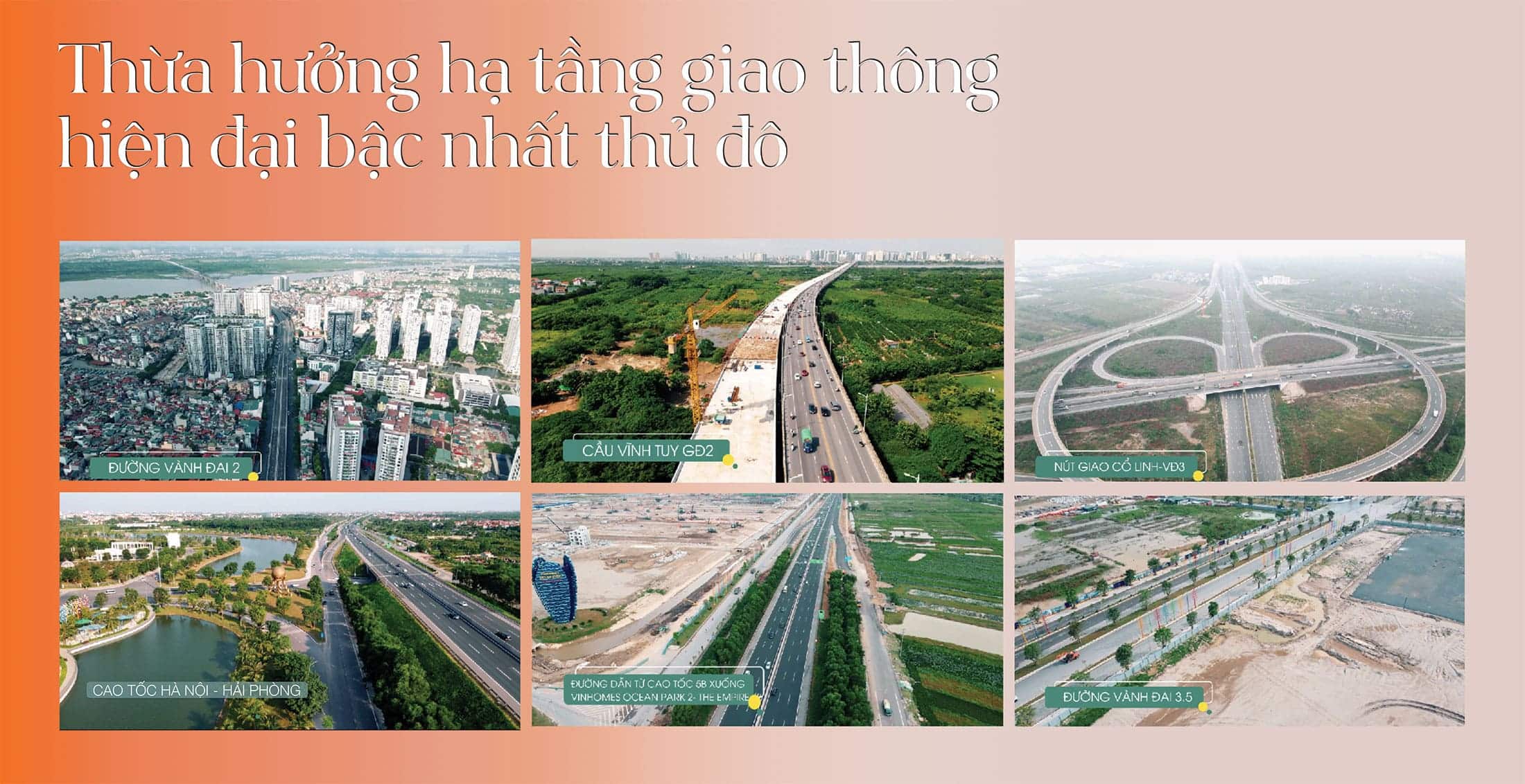 - Cao tốc Hà Nội – Hải Phòng: Tuyến đường huyết mạch kết nối trực tiếp dự án với trung tâm Hà Nội và thành phố cảng Hải Phòng, rút ngắn thời gian di chuyển đáng kể.